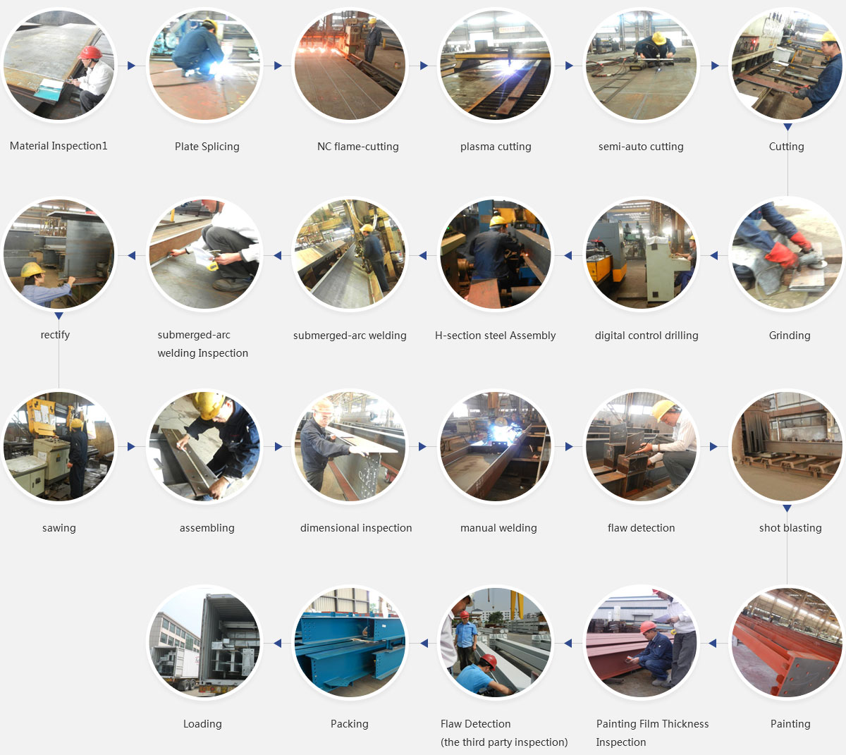 Our company has the industry's most professional processing equipment , production liജnes, CNC cent♔ers , welding center and professional design , manufacture and installation team meet customer’s requirement . Available to meet the national standard (GB) and international standards ( such as AWS, AISC , etc. ) of the steel products. In addition to running the company's products to the domestic market , but also exported to Australia , Europe, the United States, Brazil, Columbia,lThailand , Korea, Vietnam and other countries .